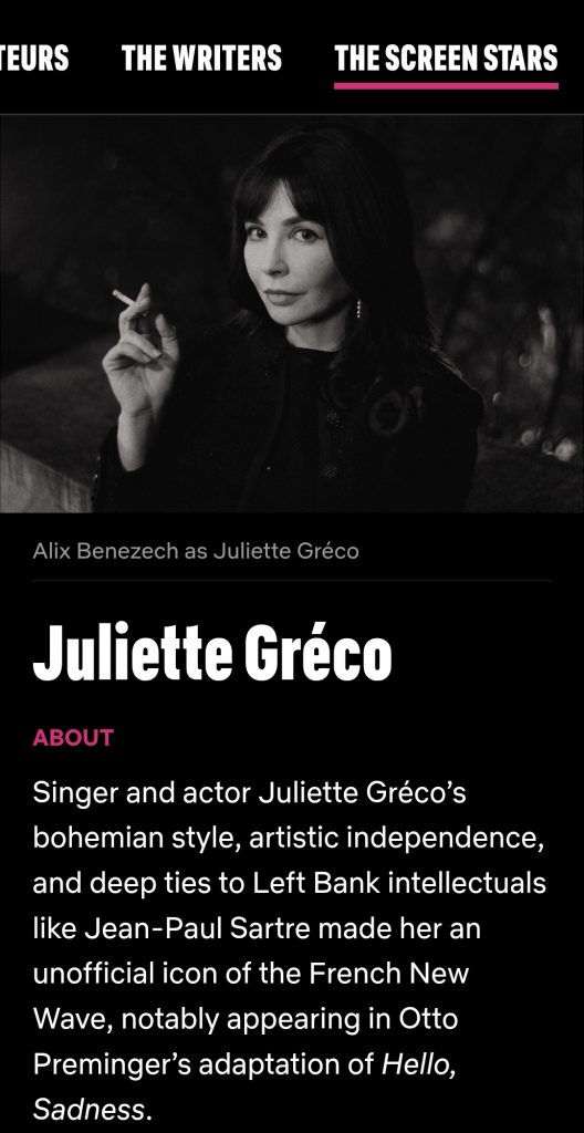 Alix interprète Elsa dans la série ALICE IN PARIS saison 2 et 3 actuellement diffusée sur Hulu et sur Amazon Prime .
